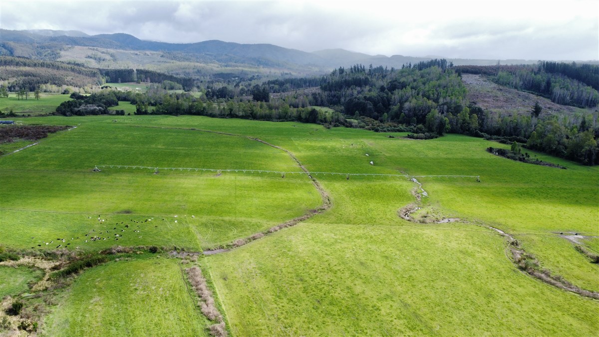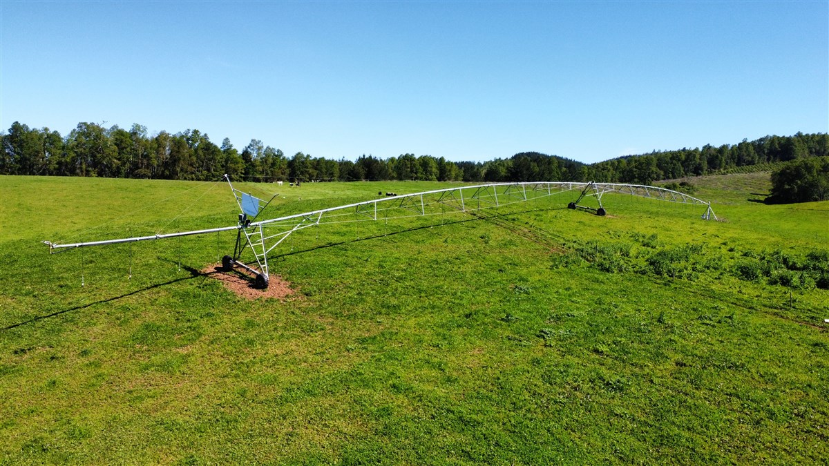 Cuenta con topografía de lomajes suaves, suelos profundos y fértiles, clima templado oceánico y 5 km de borde de río. Dispone de 36 l/s de derechos de agua consuntivos permanentes, 8 tranques interconectados, sistemas de riego por pivote y K-Line, con infraestructura hídrica propia (bombas, energía, matrices).
