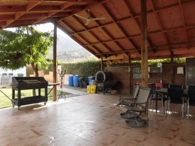 Vendo amplio terreno (parcela) de 6050 m2 de construcción 593m2 que cuenta con dos casas independientemente construidas equipadas amobladas, las dos casas son con baños, cocinas, sala de estar y comedor, la propiedad cuenta con piscina temperada funcionando, baño, sauna, camarines porque además cuenta con una cancha de baby-futbol, basquetbol, o pádel, cancha de deportes, además tiene baños aparte, grandes cobertizos, terrazas, sala de juegos, todo incluido, gran capacidad para entrar vehículos, un espacio para que funcione una tira lesa amplia cumpliendo con todas las condiciones, sala de bailes, tiene Quincho amplio 2 bodegas, piscina al aire libre, de hormigón de 10 m2 de largo x 5m2 igual 50m2 etc. 45 árboles frutales entre ellos, palto, naranjas, mandarinas, limón, nueces, almendras, aceitunas, sillas, sillones de terraza, mesas, muy amplio en ese sector, en las fotos se puede apreciar todo lo escrito, número de dormitorios en general 7 y 5 baños. Está ubicada a 8 minutos del centro de Curacaví, con pozo muy amplio dentro de la propiedad. Domicilio Calle Santa Sofía número de parcela 97, Barrio Cuyuncavi Bajo Comuna de Curacaví, Región Metropolitana.