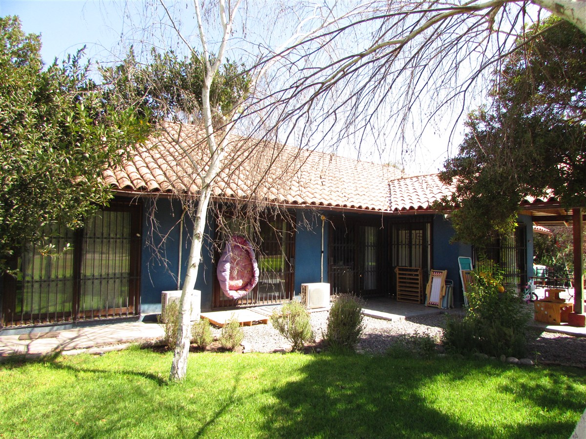 Propiedad con vivienda unifamiliar desarrollada en un piso, construcción principal estructura de madera, en muy buen estado. Superficie Pisos cerámica, cerchas de madera a la vista en living y ventanas termo panel, chimenea, sistema a/c en toda la casa, cubierta tejas de arcilla.