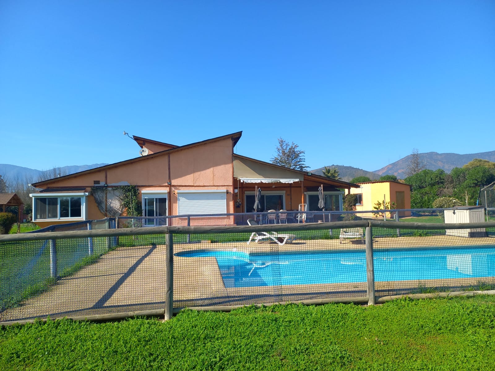 La casa de un piso está en excelentes condiciones, cuenta con 3 dormitorios, 3 baños, amplio living comedor y cocina, logia, 2 salas de estar, despensa, 2 terrazas, piscina, quincho y estacionamientos.
