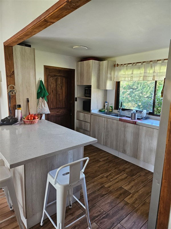 1.- CASA PRINCIPAL DE 240 MTS2 CON 3 DORMITORIOS CON PISO FLOTANTE Y CLOSET, 2 BAÑOS, COCINA AMERICANA REMODELADA, LIVING COMEDOR AMPLIO CON LUZ NATURAL, VIGAS A LA VISTA Y CHIMENEA, SALA DE ESTAR CON CHIMENEA, VISTA A JARDINES.