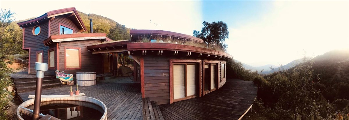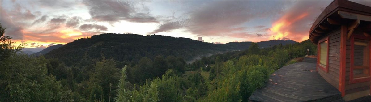 Dormitorio ppal con vista 360 grados incluyento volcán Villarrica.