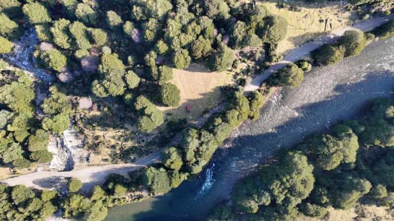 El camino acompaña en todo momento al hermoso río Mañihuales, si bien encontramos en camino antes del río es igualmente disfrutable en todo su frente ya que colinda con él.